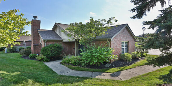 Leave your home maintenance worries behind! Sparkling end unit on a dead end street. Extra green space and privacy. Cathedral ceiling great room with easy gas fireplace on focal wall. Spacious dining area for gatherings. Light woodwork and cabinets. Two bedrooms suites on main level plus third bedroom/loft upstairs. Unusually large closets. Upstairs plumbed for additional bath if needed. New current paint palette and carpet throughout. Private fenced patio and huge two car garage. Washer, dryer and chest freezer convey. Lovely friendly community with pool, party room and lending library. Super convenient location between Worthington, Clintonville, UA and Antrim Lake. Make it yours!