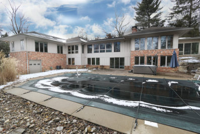 Incredible opportunity to own this sprawling entertainers haven. The large entry hall with its exposed brick and walls of glass is the hub for guests and family to make their way to the two story bar, media gaming area, new full bath as well as the heated in-ground pool and hot tub. The main areas consist of a 20+foot living room with custom built ins and two way fireplace to the dining room. You will enjoy the stunning new kitchen with 42 in custom cabinets, stone back splash, huge island, granite tops and new high end stainless appliances. The owners wing consist of a light filled vaulted suite with large sky-lit bath and walk in closet. The guest wing has three huge bedrooms, 2 more full baths and laundry area. 4th garage bay for pool equipment, large shop/office, sauna, three season room.