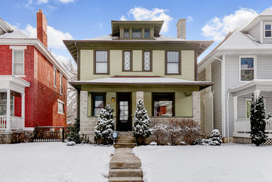 Stunning Great Franklin Park Four Square. The old house enthusiast will love the stature and care to renovation that is displayed in this beautiful home. The large entry greats you with Oak woodwork and staircase, the double opening to the living room still has the curtain rod awaiting your velvet parlor curtain and is complete with vintage style art glass chandelier and original mantle. The banquet size dining room has its original mantle and tile and hard to find box bay window. The kitchen has bee brought into this millennium with new cabinets, granite counters with under mount sink and stainless appliances. The second floor boasts four great bedroom and a spacious bath with Claw footed tub. The home is further enhanced with a fenced yard and block 2car garage. The basement is impressive
