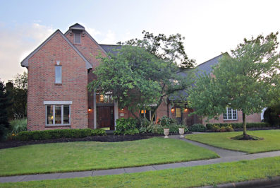 The Manor of the Bluffs. You will enjoy this prominent home with its brick façade and cut stone details, marble floored two story entry with bridal stair case, two story family room with brick fireplace, huge open kitchen with u-shaped bar and breakfast room that opens to and incredible outdoor entertaining space. The Floor plan of this home lends itself to multi generational living. The south two first floor rooms can be used in many different ways. Currently as an office and den connected by a wet bar area. This could be easily switch to a full bath to allow for an in-law suite. The dining room is the perfect size for large family gatherings. The second floor houses the owners suite on the south side with its dual closets and cathedral bath with two skylights and heated floors.
